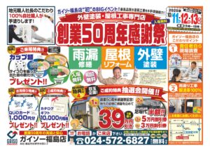 日頃のご愛顧に感謝を込めて、ガイソー福島店では✨3日間限定✨創業50周年感謝祭イベントを開催します!